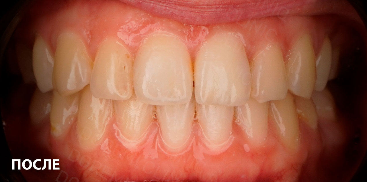 Исправили наклон зубов, а вместе с тем и вид всего профиля. Ушел дискомфорт смыкания губ за короткий срок.